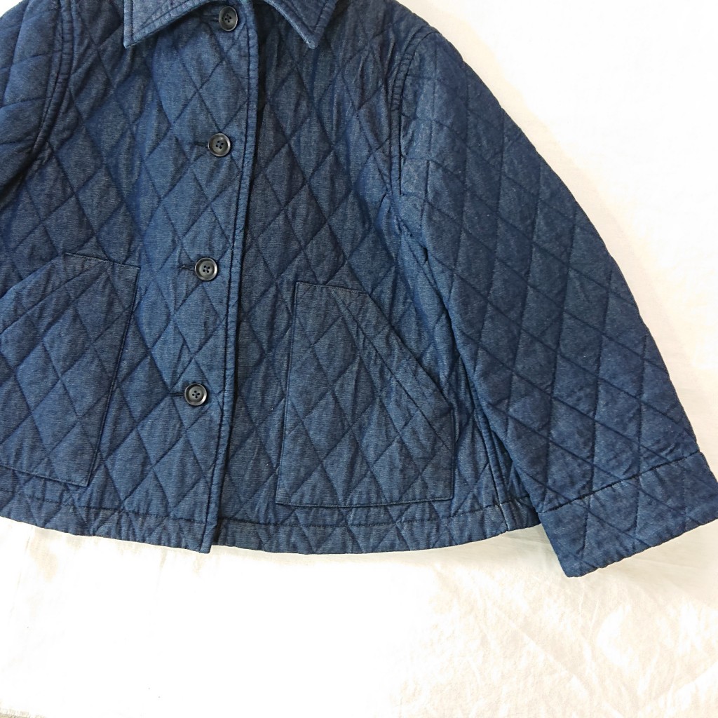 新作のレディースジャケット。襟が少し大きめでAラインシルエットの一枚、後身頃にはプリーツが入っており、ゆったりとした身幅です。素材は程良い厚さ7オンスのデニムのキルトを使用しています。着膨れないすっきりとしたテクスチャの生地です。すっきりと軽やかな着心地です。