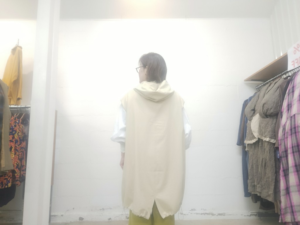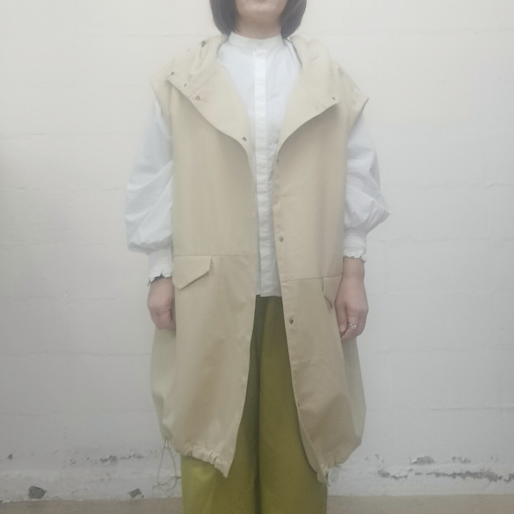 寒い時期はニットやアウターの上から、夏はTシャツやノースリーブと合わせて、ロングシーズン活躍する万能ジレパーカーです。