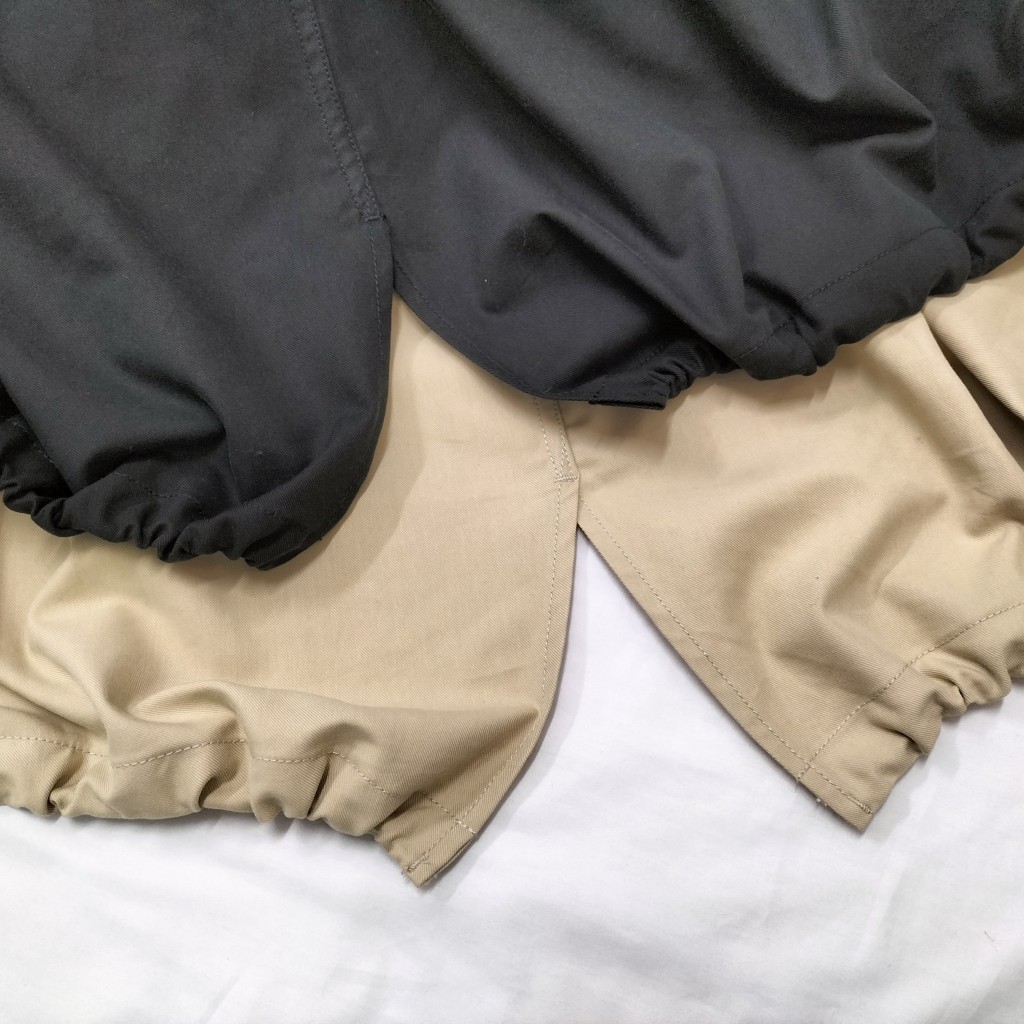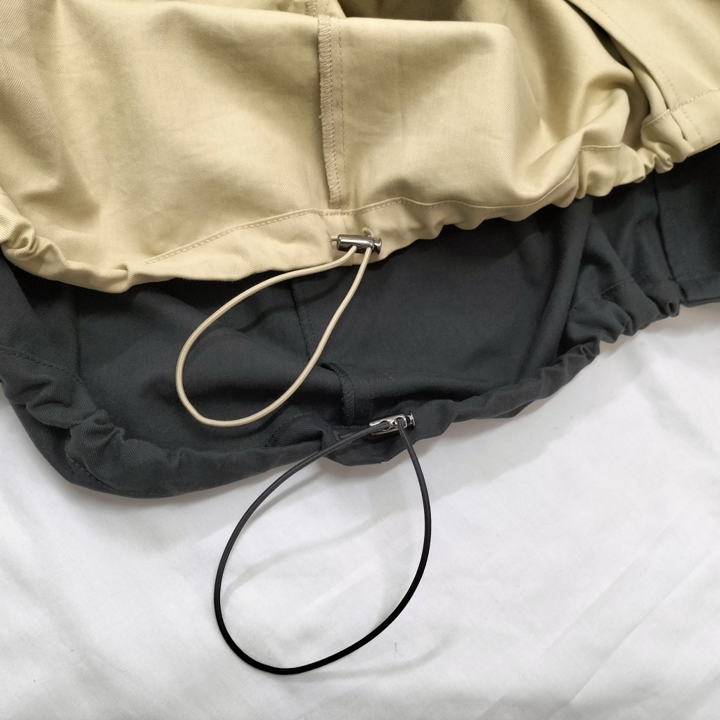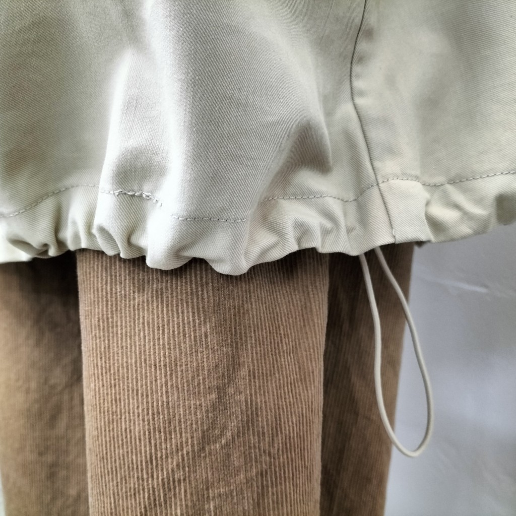 裾のスピンドルでバルーンシルエットにしたり、伸ばしてAラインで着こなしたりと、自由にアレンジ可能です。