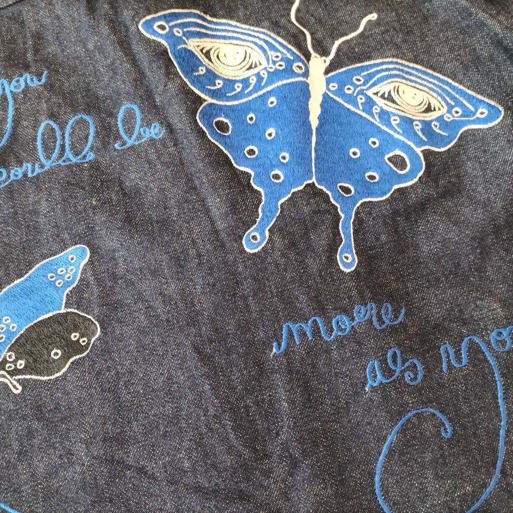バタフライ刺繍が印象的な、Tigre brocanteのカットオフGジャン。