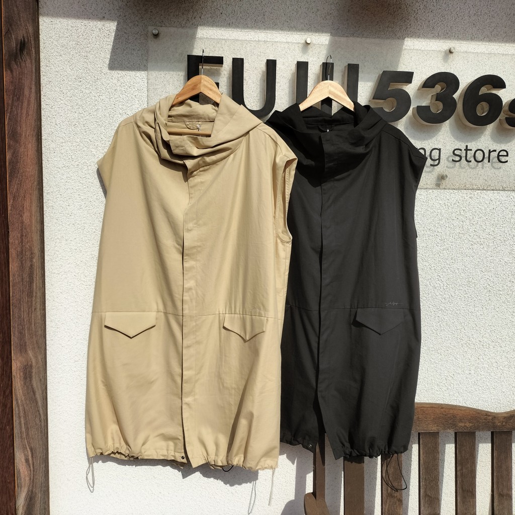 寒い時期はニットやアウターの上から、夏はTシャツやノースリーブと合わせて、ロングシーズン活躍する万能ジレパーカーです。