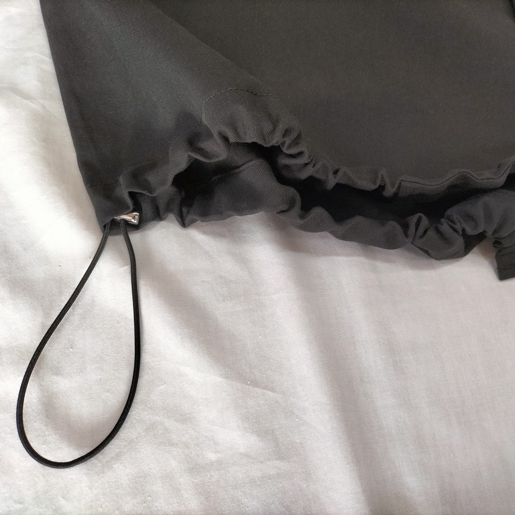 裾のスピンドルでバルーンシルエットにしたり、伸ばしてAラインで着こなしたりと、自由にアレンジ可能です。