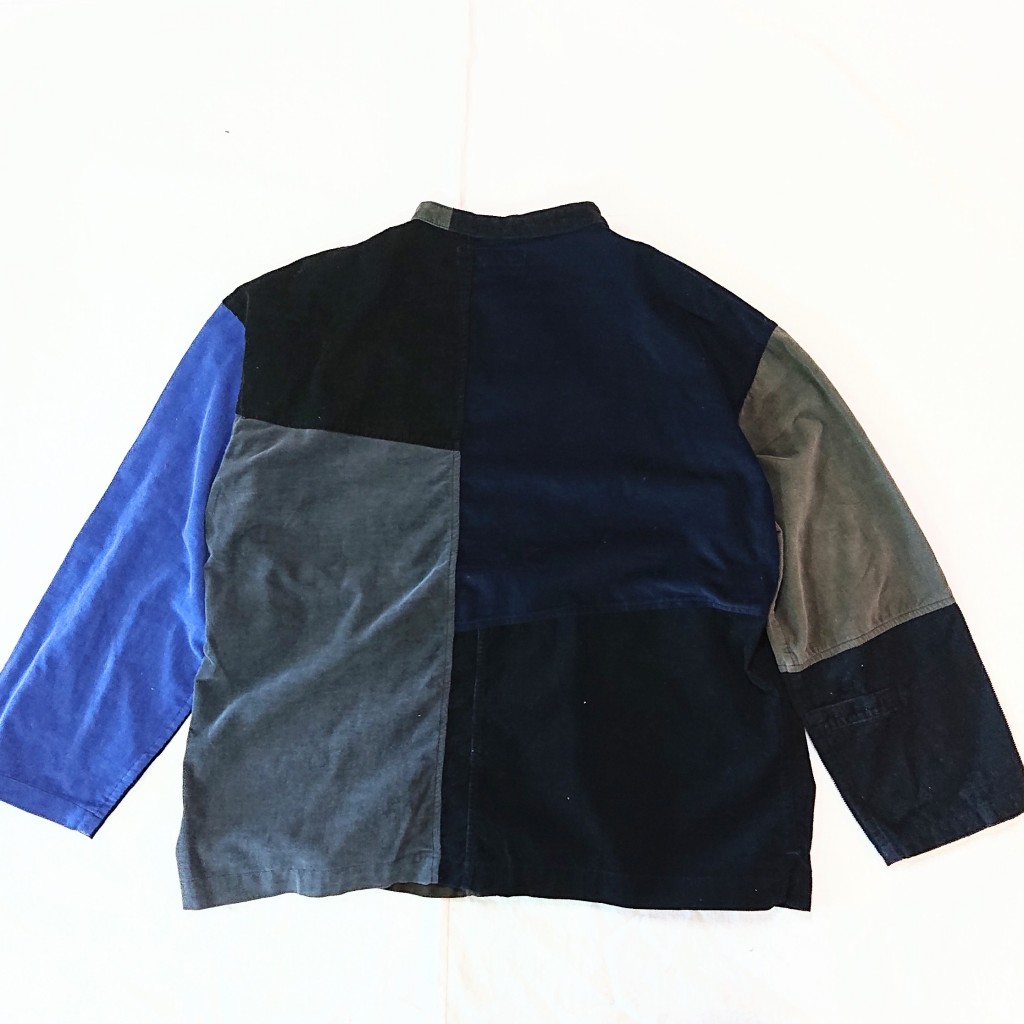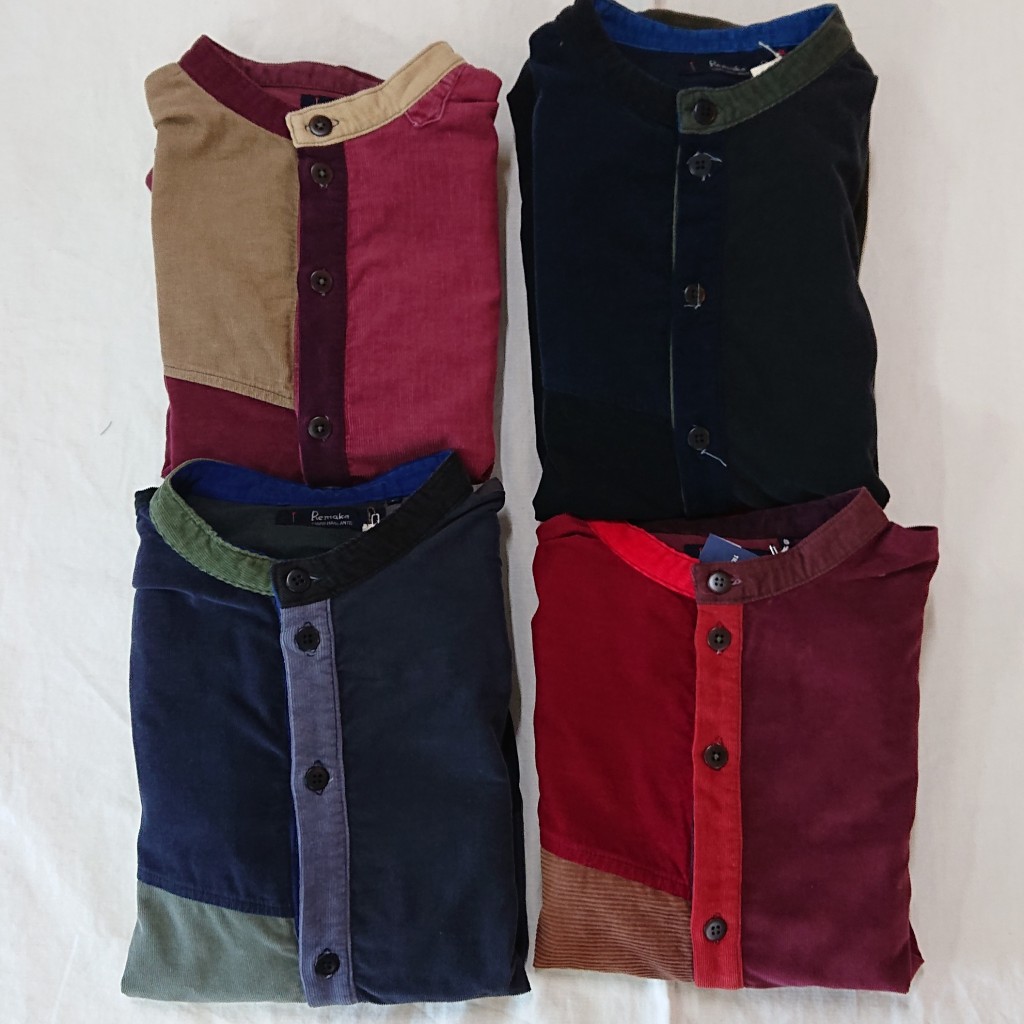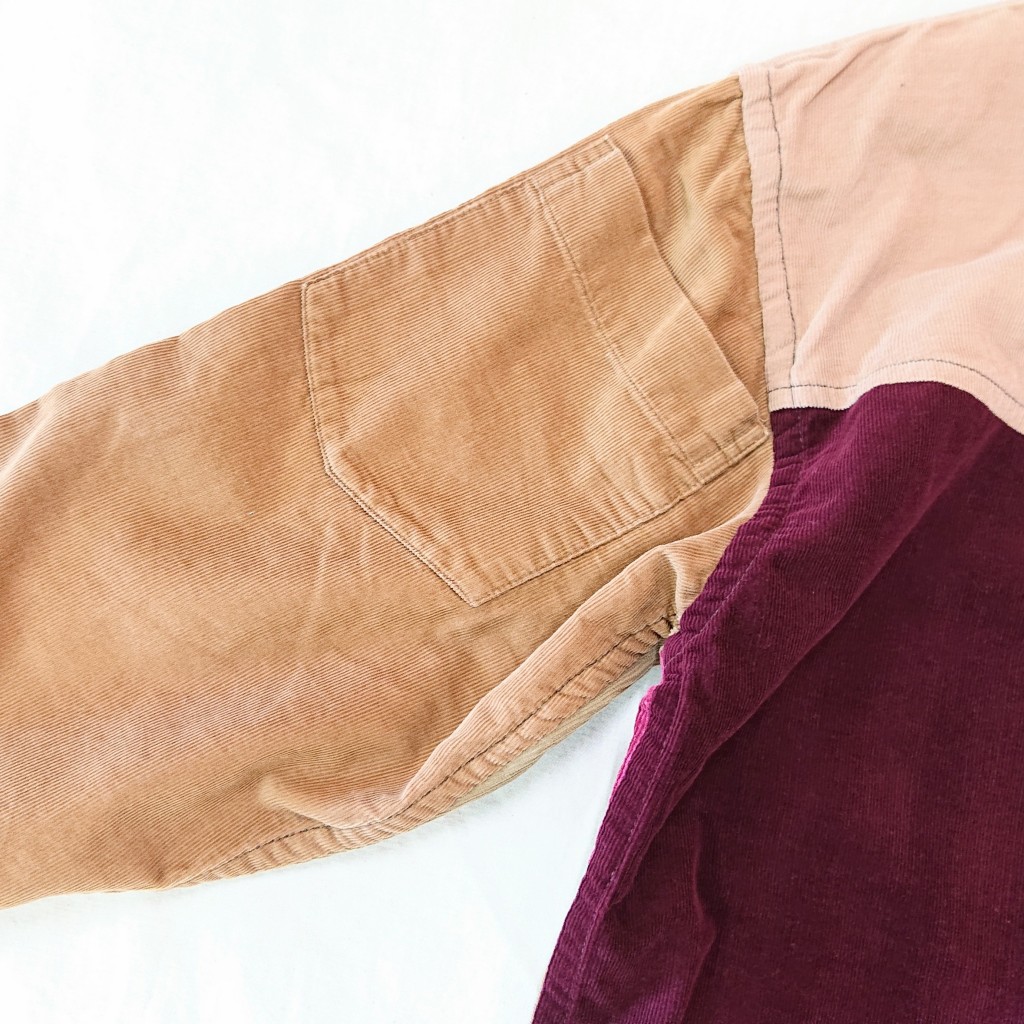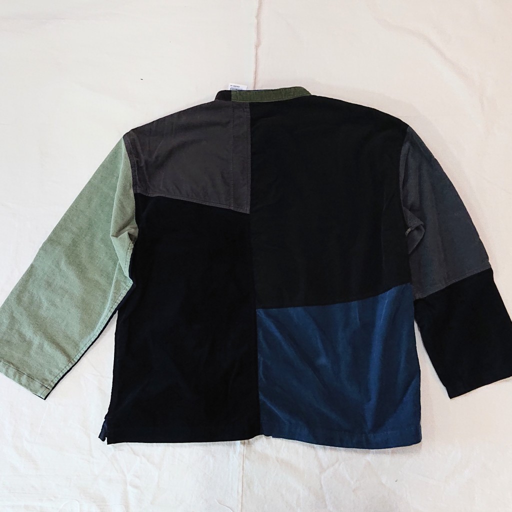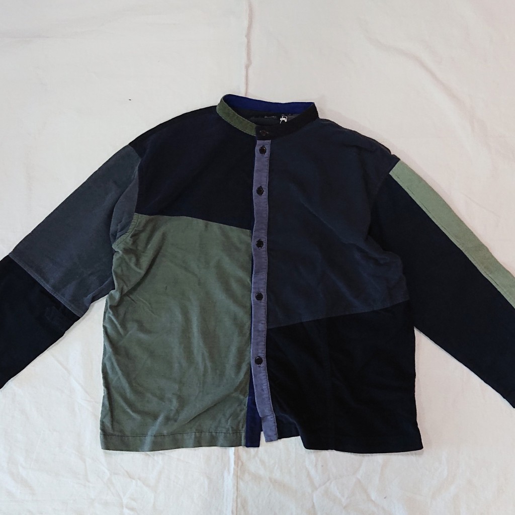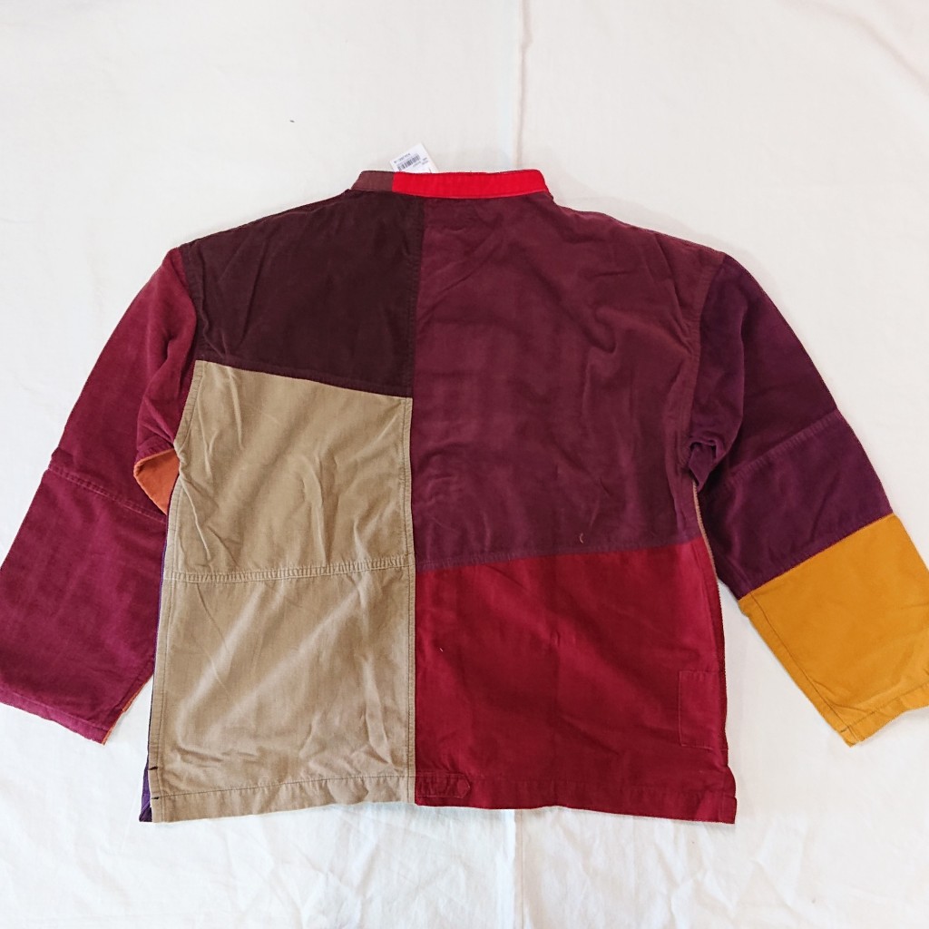 ヴィンテージのユーロコールシャツを解体し再構築。形は少し立ち上がった首元にゆったりとした身幅のヤッコシャツを仕立てました。比翼式の前開きタイプ、一枚でさらりと着るにも、もってこいの形です。