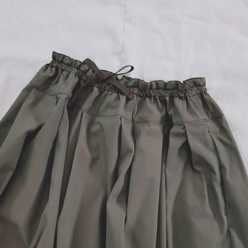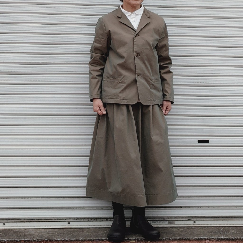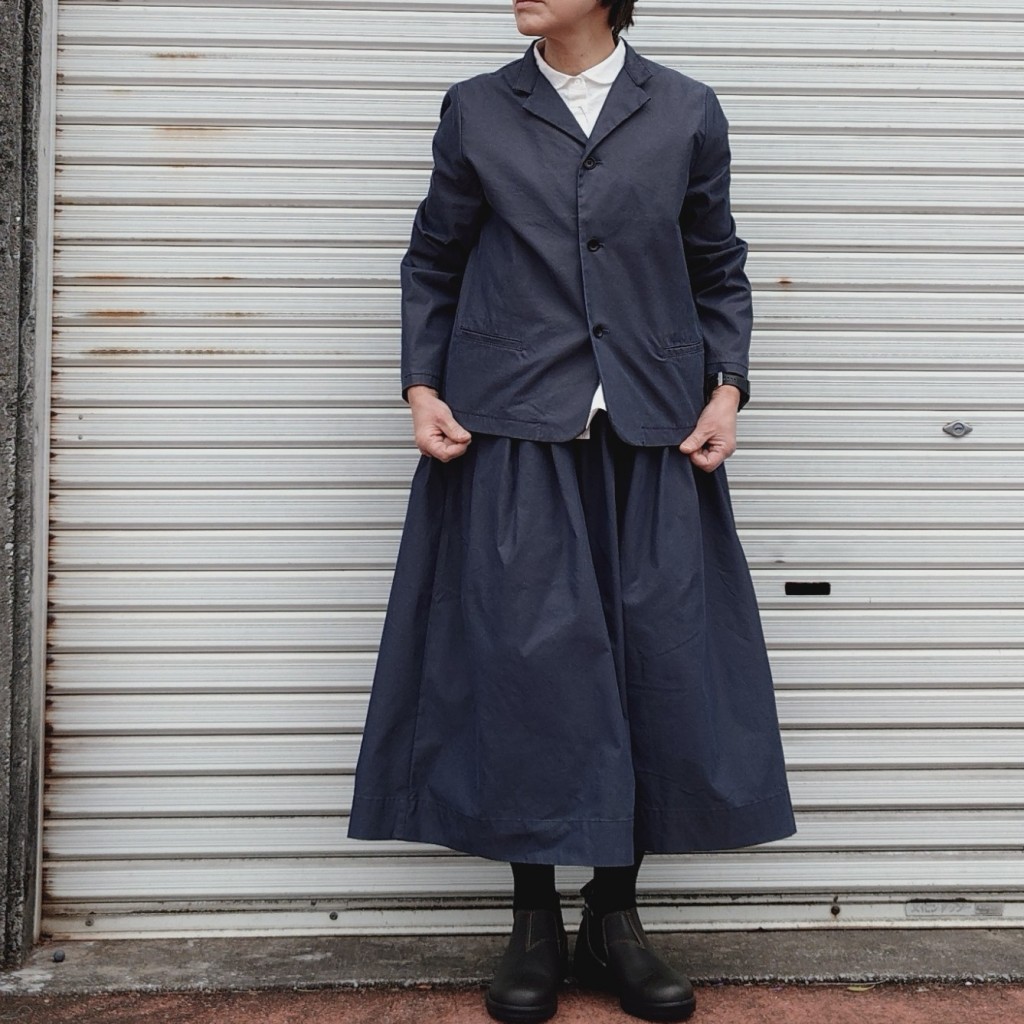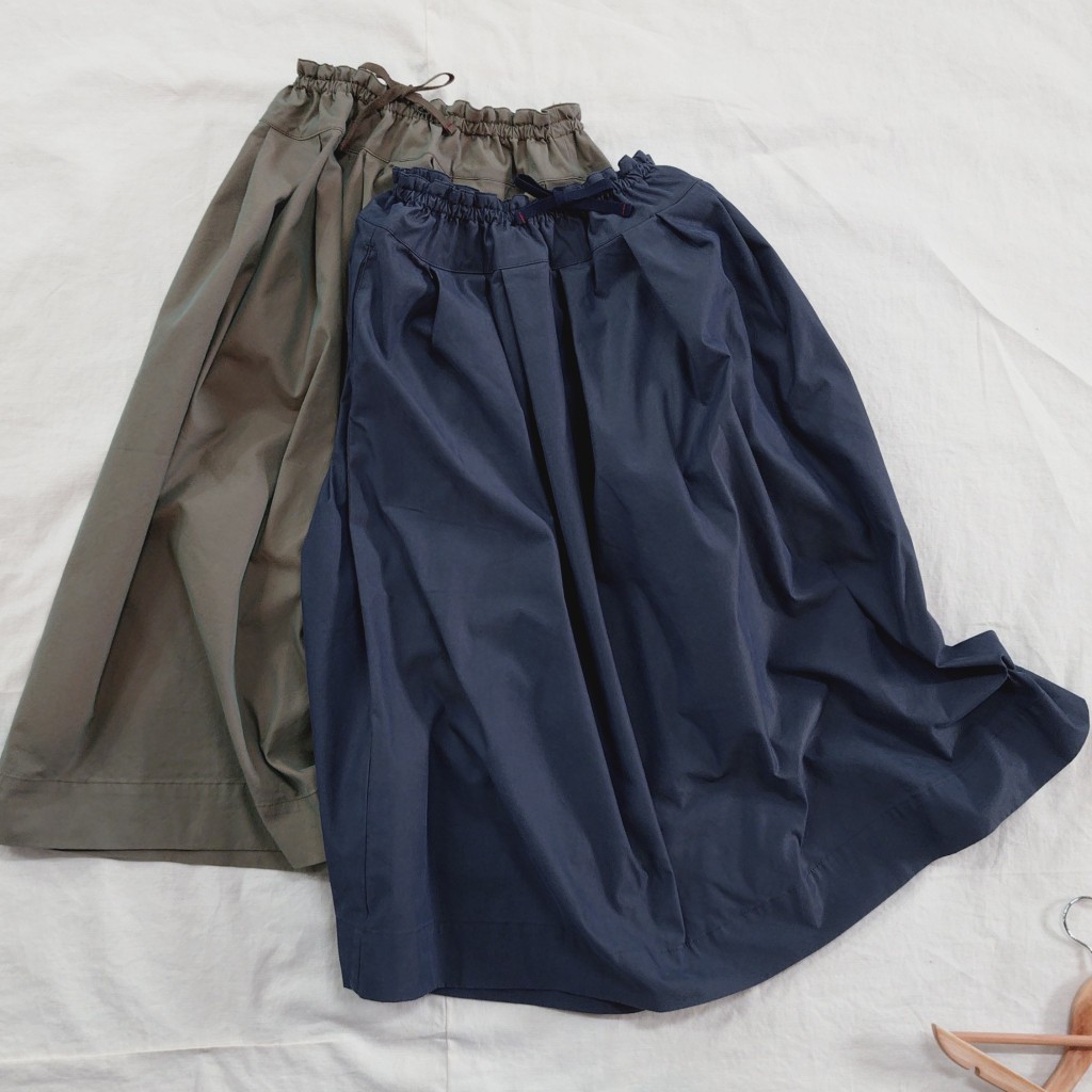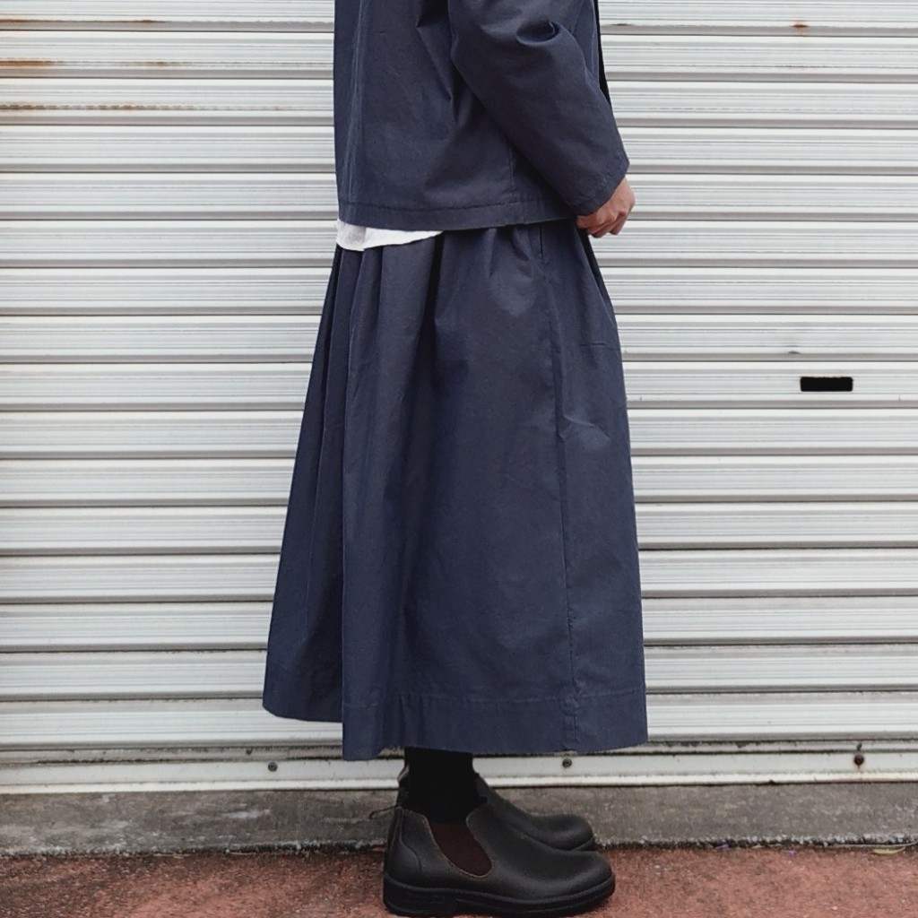 角度や光の反射によって、深みある色彩が感じられる玉虫ギャバ。しなやかさの中にハリ感も感じられる生地です。形は定番のフィセルロングスカートをご用意しています。